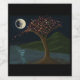 Scène naturelle colorée. Une rivière éclairée par la lune, des collines ondoyantes et un arbre coloré aux feuilles qui volent dans la brise.