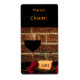 Cette belle étiquette de bouteille de vin présente une image simple d'un verre de vin rouge foncé, d'une assiette de fromage et de fleurs rouges contre un mur rustique en brique orange. Tout le texte peut être customisé avec vos informations spéciales.