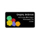 Ces étiquettes d'adresse de retour présentent des illustrations colorées de jeux de rôle ou de dés de jeu d'imaginaire placés contre un arrière - plan noir avec votre nom et adresse en lettres blanches.