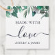 Cette étiquette de cadeau « Fabriquée avec amour » présentant une douce illustration botanique d'eucalyptus ajoute une touche finale douce et attentionnée aux faveurs, friandises et cadeaux faits à la main. Le design de verdure propre et intemporel la rend parfaite pour les mariages, les fêtes prénatales, les soirées ou les cadeaux de remerciement. Conçue pour se coordonner magnifiquement avec la papeterie de mariage et la décoration à l'eucalyptus assorties, cette étiquette ajoute un détail soigné et sincère que les invités apprécieront.