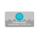 Étiquette Gris et Aqua Chevron Motif avec Monogramme moderne