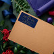 Un luxueux mélange de bleu marine foncé et d'or donne un ton d'élégance intemporelle. Votre adresse de retour est accentuée par un emblème créé avec des motifs saints et votre initiale monogramme au centre, enfermé dans un cercle double dans un ton or. Parfait pour vos envois de vacances de personnel à entreprise.
