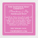 Un étiquette pour les produits de bain et de soins du corps avec un arrière - plan rose et un texte blanc.