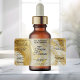 This dropper bottle product label features an ivory marble and faux gold glitter background with black text. This label measures 2.375 inches long by 1.25 inches high (60 mm long by 32 mm in height) and is a great choice when you are looking to package essential oils, fragrance oils, beard oils, face serums, hair serums, and other products in standard 1/2 ounce (15 ml) or 1 ounce (30 ml) glass dropper bottles.
