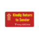 Cette conception étiquette comprend les messages "Kindly Return to Sender" et "Wrong Address", ainsi qu'une forme de flèche. Il peut être utilisé pour indiquer que le courrier reçu a été livré à la mauvaise adresse ou que le destinataire est inconnu, et doit être retourné à l'expéditeur. [~Z0000168]