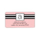Notre monogramme de lettre classique au centre d'une bande horizontale rayée étiquettes d'adresse de retour sont la touche finale parfaite pour votre correspondance. La couleur Arrière - plan peut facilement être changée par vous ... il suffit d'aller à la personnaliser et sous modifier cliquez sur la couleur arrière - plan et choisissez votre couleur! Autres lettres disponibles dans notre boutique @ www.celebrateitinvites.com.