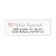 Votre adresse personnelle personnalisée de manière simple... dans un étiquette blanc, clair et propre avec deux lignes de texte alignées par le centre, et votre nom écrit dans un style de police de script élégant avec l'image d'un petit coeur rose