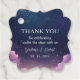 Envoyez vos invités à la maison avec un grand merci enveloppé de beauté céleste. Cette élégante marque de faveur de mariage dispose d'une marine rêveuse et violette étoile ciel arrière - plan avec nuages doux et script romantique. Parfait pour les mariages cosmiques, stargazing ou nocturnes, cette étiquette de faveur est une belle façon de dire "merci" pour la célébration sous les étoiles. Personnalisez facilement avec vos noms et date mariage pour une touche de finition magique à vos faveurs.