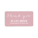 Étiquette d'adresse de retour du Mariage de script de manuscrits rose et blanc. Design par Elke Clarke© pour MonogramGallery imprimé par Zazzle. Envoyez vos cartes de remerciement de mariage à vos amis et votre famille en utilisant ce étiquette simple et magnifique avec les mots "merci" écrits dans une écriture de typographie blanche manuscrite texte superposition. Vous pouvez personnaliser avec vos noms mariés et nouvelle adresse. Autres couleurs disponibles.