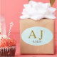 Étiquette Monogramme Aquarelle Turquoise