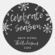 Design hivernal moderne et élégant pour don et envoi de cartes. Il y a des illustrations de flocons de neige en parties scintillant d'argent avec le texte "célébrer la saison". Votre nom de famille et votre année peuvent également être imprimés.