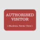 Les caractéristiques de conception ce d'étiquette de style de visiteur nommées humbles d'insigne le message "ONT AUTORISÉ LE VISITEUR", et un nom de la société personnalisable ou tout autre message fait sur commande. Un insigne nommé de style d'étiquette comme ceci pourrait peut-être être employé pour indiquer qu'une personne est un invité ou un visiteur connu et autorisé sur des affaires ou un lieu de travail. [~Z0000358]
