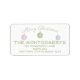 Ce étiquette d'envoi présente des ornements de Noël en couleur non traditionnels et tendance dans le vert pastel, le rose et le bleu avec des étoiles blanches. Les ornements sont accrochés au message vert pastel "Joyeux Noël" en haut et l'adresse du modèle est ci-dessous. Remplissez les champs de texte avec vos informations.