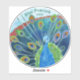 Illustration fantaisiste de paon bleu sur autocollants personnalisés.