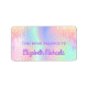 Étiquette Parties scintillant rose irisé nom arc-en-ciel pla