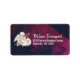 Étiquettes de adresse à l'image pastorale douce. Conçu avec un ange serein aux ailes jaunes tenant un crook berger. Assis à côté de 2 agneaux blancs moelleux. L'aquarelle s'écarte autour de l'image en se mélangeant à un arrière - plan blanc en coquille d'oeuf.