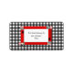 Un étiquette avec l'illustration de quatre crayons rouges formant un rectangle au centre. L'Arrière - plan est gris en vichy. Personnalisez avec votre nom.