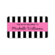 Autocollants personnalisables sur plaque / étiquettes de livres avec noir et blanc, bandes verticales et texte personnalisable sur un panneau rose. Design moderne pour les femmes.