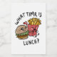 À quelle heure est le déjeuner ? Hamburger drôle et frites amoureuses. Un match parfait pour les petits comme pour les adultes.
