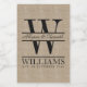 Créez votre propre monogramme simple, élégant et unique avec ce logo personnalisé avec typographie rétro sur un arrière - plan d'image brun clair et naturel. Remplacez l'exemple de texte par l'initiale de votre famille, les noms, la date du mariage ou tout autre texte pour un cadeau personnalisé. Fait un cadeau merveilleux pour Mariage, Anniversaire, ménage ou hôtesse, anniversaire, retraite et bien d'autres occasions spéciales. N’hésitez pas à me contacter si vous avez besoin d’aide pour la personnalisation ! (Remarque importante : Ce produit n'est pas fait de tissu de burlap réel. Une image/photo de burlap naturel est utilisée comme arrière - plan de conception et imprimée sur une surface plane.)