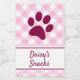 Label your pup’s treats in style with this cute pink and white gingham food label! Featuring a classic checkered pattern, a sweet paw print detail, and space for your dog’s name, this sticker is perfect for treat jars, gift bags, or homemade goodies. A charming choice for cottagecore pet lovers and pink-loving pups!