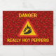 Panneau d'avertissement triangle avec une silhouette de poivre et de flamme sur arrière - plan de poivre sans soudure. Deux champs de texte personnalisés.
