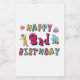 Joyeux 2e anniversaire. Design amusant et mignon anniversaire avec un bel ours en peluche tenant un cadeau et un crayon amusant écrivant les souhaits d'anniversaire. Un parfait assortiment de vêtements, chemises et accessoires.