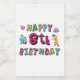 Joyeux 8e anniversaire. Design amusant et mignon anniversaire avec un bel ours en peluche tenant un cadeau et un crayon amusant écrivant les souhaits d'anniversaire. Un parfait assortiment de vêtements, chemises et accessoires.