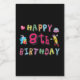 Joyeux 8e anniversaire. Design amusant et mignon anniversaire avec un bel ours en peluche tenant un cadeau et un crayon amusant écrivant les souhaits d'anniversaire. Un parfait assortiment de vêtements, chemises et accessoires.
