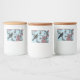 Ce étiquette à l'usage pour un pot de nourriture a un oiseau noir assis dans un cerisier avec des cerises rouges et de jolies fleurs de cerisier rose sur un arrière - plan bleu clair. Customisez votre texte avec le modèle.