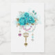 Clé d'or antique aux roses turquoise tendance décorée de feuilles d'or blanc et de perles rose et bleu. Couleur tendance. Rose turquoise. Blanc doré. Tiffany bleu.