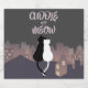 Chats avec queues entrelacées pour une étiquette de bouteille de Saint Valentin mignonne avec skyline de ville. Bonne idée cadeau pour lui.