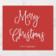 Ces étiquettes de vacances simples et branchés disent "Joyeux Noël" en écriture rustique, blanche et manuscrite sur un arrière - plan rouge vif.