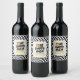 1er anniversaire sourire visage rétro noir, blanc et jaune super éclat cool fête d'anniversaire faveur bouteille de vin.