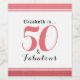 Célébrez votre anniversaire "50 et fabuleux" avec ce design customisé de fête d'anniversaire 50 et Fabuleux qui peut être personnalisé avec votre nom. Ce design moderne et élégant comprend une typographie populaire et une police de caractères en rose rouge sur un arrière - plan blanc. La typographie et le étiquette blanc sont placés sur un arrière - plan de goutte d'eau rose rouge.