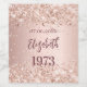 Un étiquette de bouteille pour une fête d'anniversaire girly et glamour de 50ème (ou tout âge) avec les filles. Un arrière - plan d'or rose avec un élégant confetti d'or faux rose. Le texte : Le nom est écrit en or rose foncé avec un grand script de style à la main moderne. Personnalisez et ajoutez une date, un nom et une année de naissance.