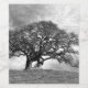Une photo en noir et blanc d'un impressionnant chêne avec de la place pour le texte pour personnaliser votre étiquette.