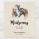 Vins de fabrication étiquettes de bouteille avec un magnifique dessin d'aquarelle. Avec une paire de chevaux, brun et blanc. Tête et cou visibles avec de la peinture goutte le long de la base de leur cou. L'ambiance du sud-ouest.