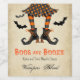 Une idée amusante pour votre fête d'Halloween, ce étiquette de vin présente une sorcière fantaisiste en bas rayés et une jupe à pois de polka qui tombe sur la scène avec des chauves-souris volant autour d'elle. Le texte en gras "Boos and Booze" est ajouté avec un sous-texte supplémentaire qui peut être personnalisé avec votre libellé souhaité. La vintage viticole est présentée comme "Vampire Blood". Cette option peut être modifiée si vous souhaitez utiliser un autre texte. Le graphique de jolies sorcières est original artwork©delightful-doodles.com.