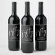 Étiquettes de vin noir élégant de 50ème anniversaire avec "cinquante" présenté dans un script blanc chic et votre nom et la date en simple lettrage blanc.
