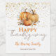 Une magnifique fête à thème d'action de grâces ou un étiquette de vin cadeau. Ce design fabuleux présente des citrouilles rustiques de l'automne avec des feuilles dans des tons chauds de marron et d'orange. Facile à personnaliser avec vos propres détails de célébration d'action de grâce.