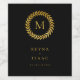 Monogramme de couronne de feuilles dorées moderne et élégant, étiquettes de vin personnalisées. La couleur de fond, indiquée en noir, peut être personnalisée.