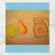 Esquisse d'aquarelle d'une poire et d'une pomme avec un lanceur rose