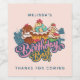 Étiquettes de bouteilles avec une rangée de succulents cupcakes à l'air avec des tourbillons et des cerises et le givrage délicieux. Illustré dans un style rétro classique. Les couleurs sont vert rétro, rouge, bleu et crème. Bassin d'anniversaire écrit dans une police de typographie sophistiquée. Personnalisez avec un nom.