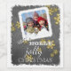 Unique, classique, tendance, joli et décoratif sticker Holiday. Fun 'Have A Holly Jolly Christmas' citation texte écrit en typographie sur un arrière - plan de tableau noir et gris, avec faux motif de flocons d'or. Avec place pour customiser ou personnaliser avec photo de votre choix.