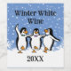 Dancing Penguins Design Vin Étiquette sur un arrière - plan enneigé, avec texte et couleur personnalisables.