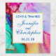 Love & Merci étiquette bouteille mariage avec un design abstrait artistique sophistiqué. Peinture aquarelle avec les couleurs mélangeant et mélangeant créant un motif marbré fluide. Un cadre blanc avec une fausse bordure en feuille d'or superposée avec votre texte personnalisé écrit à l'intérieur.