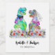Dinosaur thème vin mariage étiquette pour ravir vos invités avec drôle Dinosaur marié et marié dans une belle prairie fleur sauvage colorée. Aquarelle T-Rex marié et marié étant rude en psychédélique couleurs vives modernes prennent sur l'illustration des dinosaures préhistoriques et facile à customiser avec les noms de mariée et mariée et la date mariage dans un script amusant de typographie lunatique. Drôle Tyrannosaurus Rex marié et marié et aquarelle d'été illustrations florales dans les tons violet bleu rose vert jaune et orange. Dino original unique et oeuvres d'art florales d'été de l'artiste Catherine Sweetman