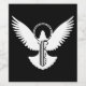 Flying dove with simple key icon.