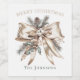 Add a touch of refined holiday charm to your celebrations with this elegant Christmas wine bottle label. Featuring a soft champagne-gold bow, winter greenery, pine cones, and subtle seasonal accents, this design creates a classy and timeless look for gifting or entertaining. Personalize the family name or message to make it ideal for Christmas parties, dinner tables, hostess gifts, corporate gifting, or festive wine baskets. A beautiful choice for anyone who loves sophisticated holiday décor.